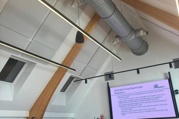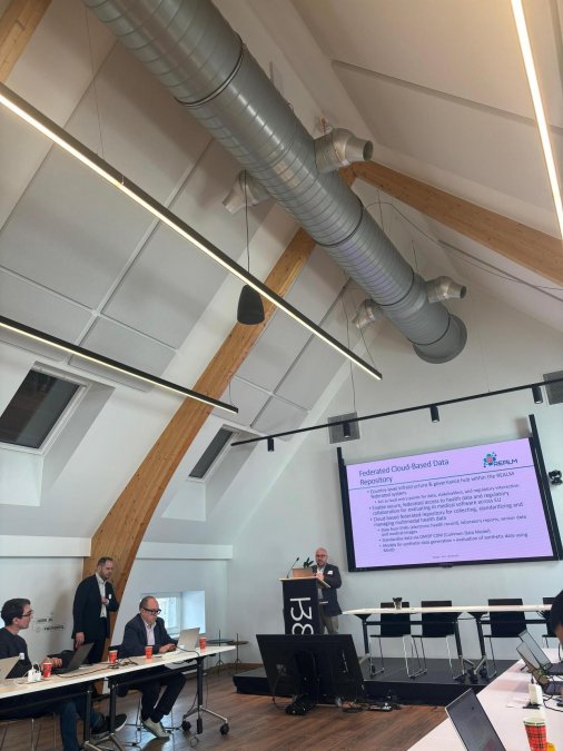 Participants explored the full REALM approach, from federated real-world data infrastructures to reproducible AI model assessment. The workshop highlighted how cross-border data collaboration can be achieved without centralising sensitive health data, while ensuring compliance with European regulatory frameworks such as the AI Act and the European Health Data Space.